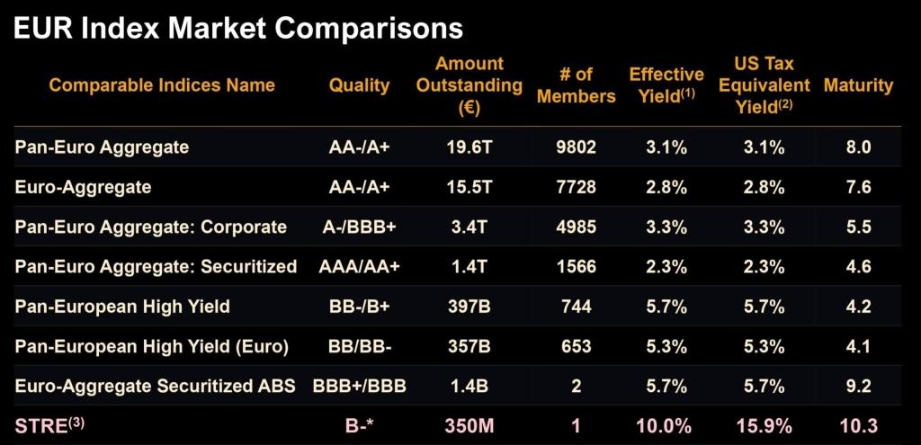 “Even before tax, STRE doubles high-yield and triples investment-grade coupons. After US tax-equivalent conversion the yield explodes to 15.9 percent thanks to its ROC treatment!”